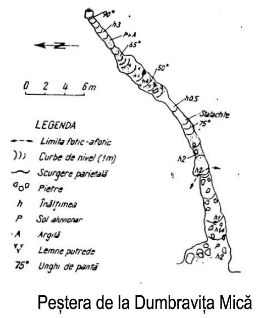Resurse trofice sărace (mici acumulări de guano, rădăcini pătrunse de la exterior prin plafon, crengi).