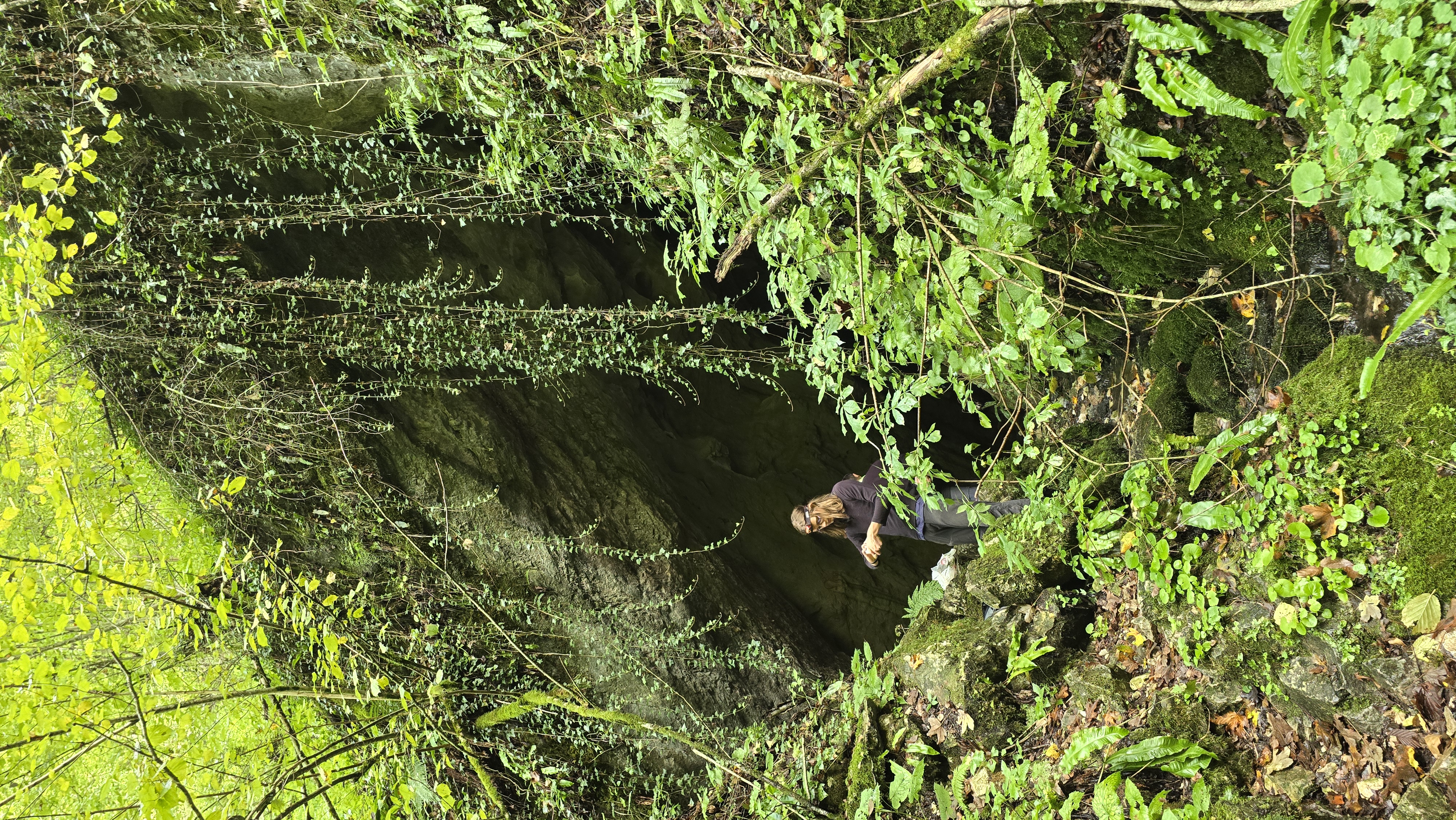 Cred, că am tăiat un meandru scurt, și nu mai știam, unde eram. Stânga? La Dreapta? Unde merge firul? Aici e mai larg, dar trebuie săpat un pic, și ... capul meu a ieșit la suprafață! Cum adică? Am tăiat două meandre? Da. Am ieșit chiar în mijlocul sifonului, nu unde am intrat.