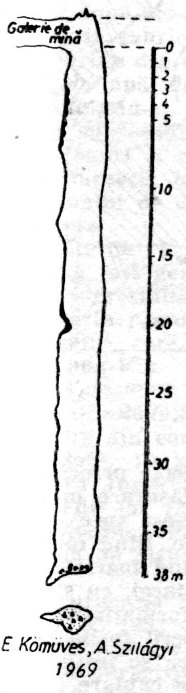 Din cauxa sterilului care a fost aruncat în el, avenul nu a putut fi explorat decît pe o adîncime de 38 m. De remarcat că el nu trădează nici o legătură cu suprafaţa şi arie o boltă intens fisurată, lipsită de concreţiuni. În aceeaşi galerie s-a mai intersectat şi o altă cavitate, de dimensiuni reduse, în care s-au găsit cîteva formaţiuni stalagmitice deosebit de frumoase.