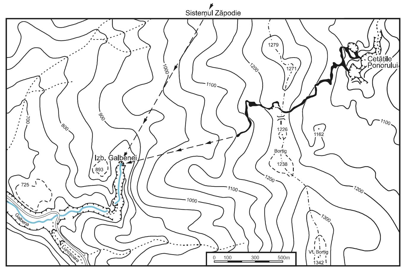 Explorãrile speologice efectuate în Cetãțile Ponorului (Viehmann et al.1980) și Sistemul Zãpodie (Vãlenaș, 1977) au conturat rețeaua de galerii din arealul de insurgențã. Distanțele aeriene rãmase între sifoanele terminale din cele două mari cavități si Izbucul Galbenei (890 m pentru Cetãþile Ponorului si 2050m pentru Zãpodie), respectiv posibilitatea realizãrii unei joncțiuni, ne-a îndemnat la reluarea explorãrilor subacvatice.