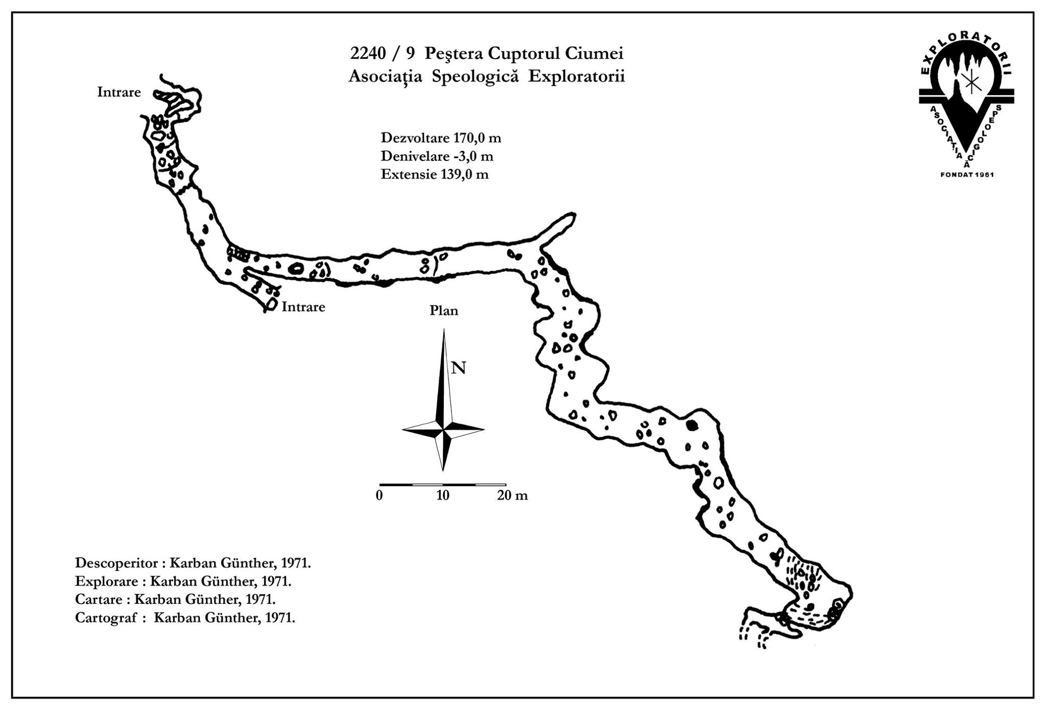 vers. dr., alt. relativă: 50 m, 3 intrări