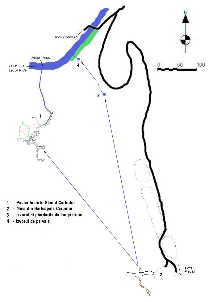 Singura cavitate importanta care se pare ca face parte din sistemul hidrocarstic de la Stanul Cerbului este Pestera din Mina Cerbului* (cu toate ca nu a fost inca efectuata o colorare) datorita debitului activelor si a distantei relativ mici.