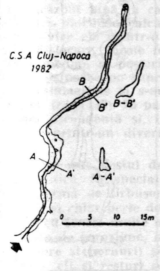 Golul subteran este constituit dintr-o singură galerie, activă, în lungul căreia se întîlnesc două hornuri: unul de 4 m şi altul de 7 m înălţime (secţiunile A şi B).