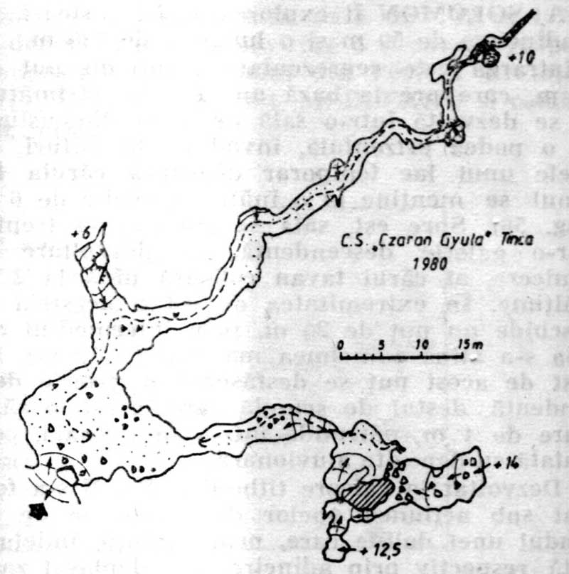 La marile viituri apele se adună în faţa conului de obstruare şi formează un lac subteran care persistă cîteva zile sau chiar săptămîni. În timp ce galeria de nord-est, dezvoltată de-a lungul unor diaclaze destul de evidente, se îngustează treptat şi prezintă cîteva lacuri-sifon, galeria estică se lărgeşte mult în partea finală şi formează o sală cu dărîmături, spre care converg două galerii puternic ascendente, fosile.
