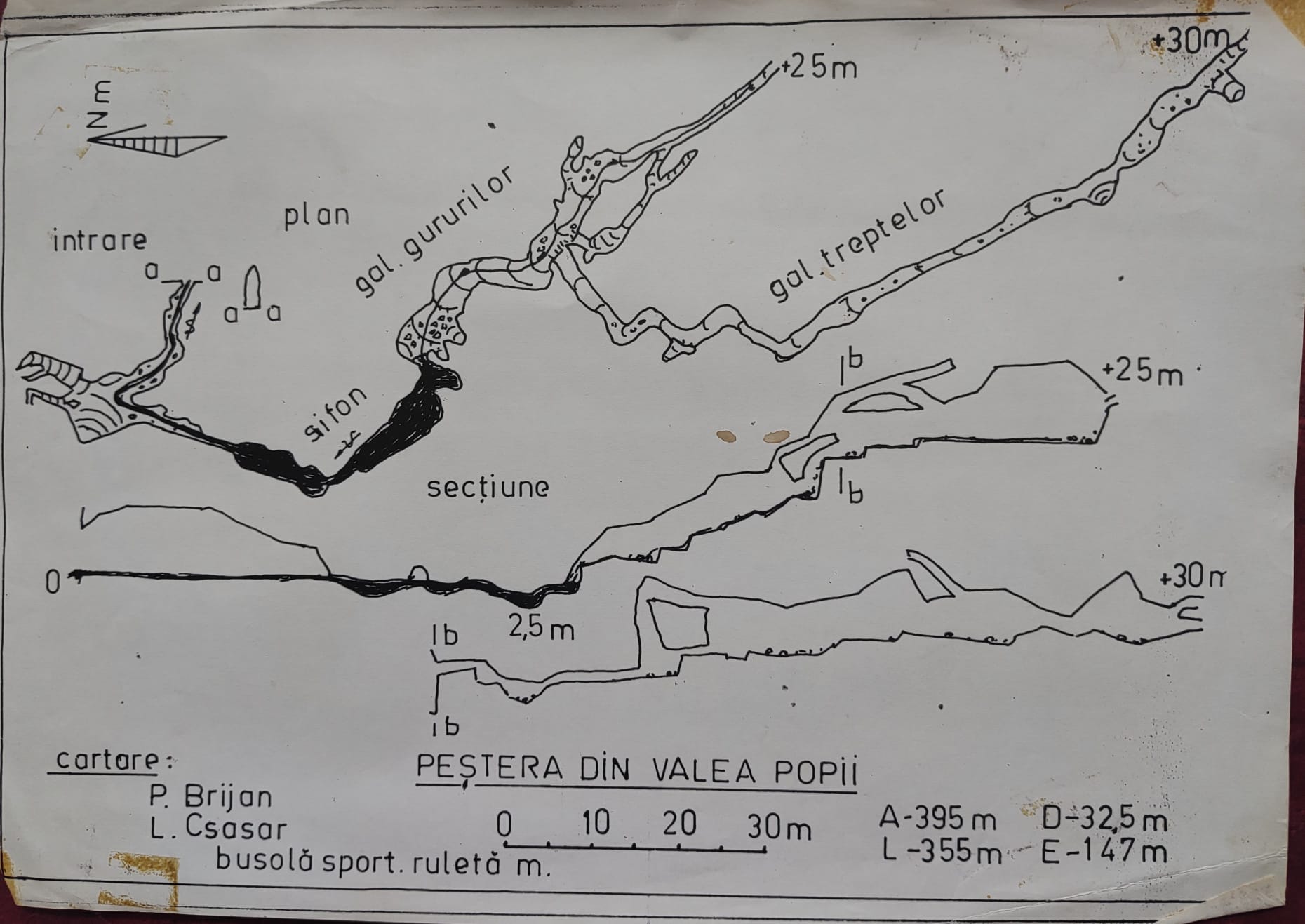 Data explorării:14 aug.1974. Cartare. Groh Ladialau,Gabor Halasi , Heredi Zoltan.