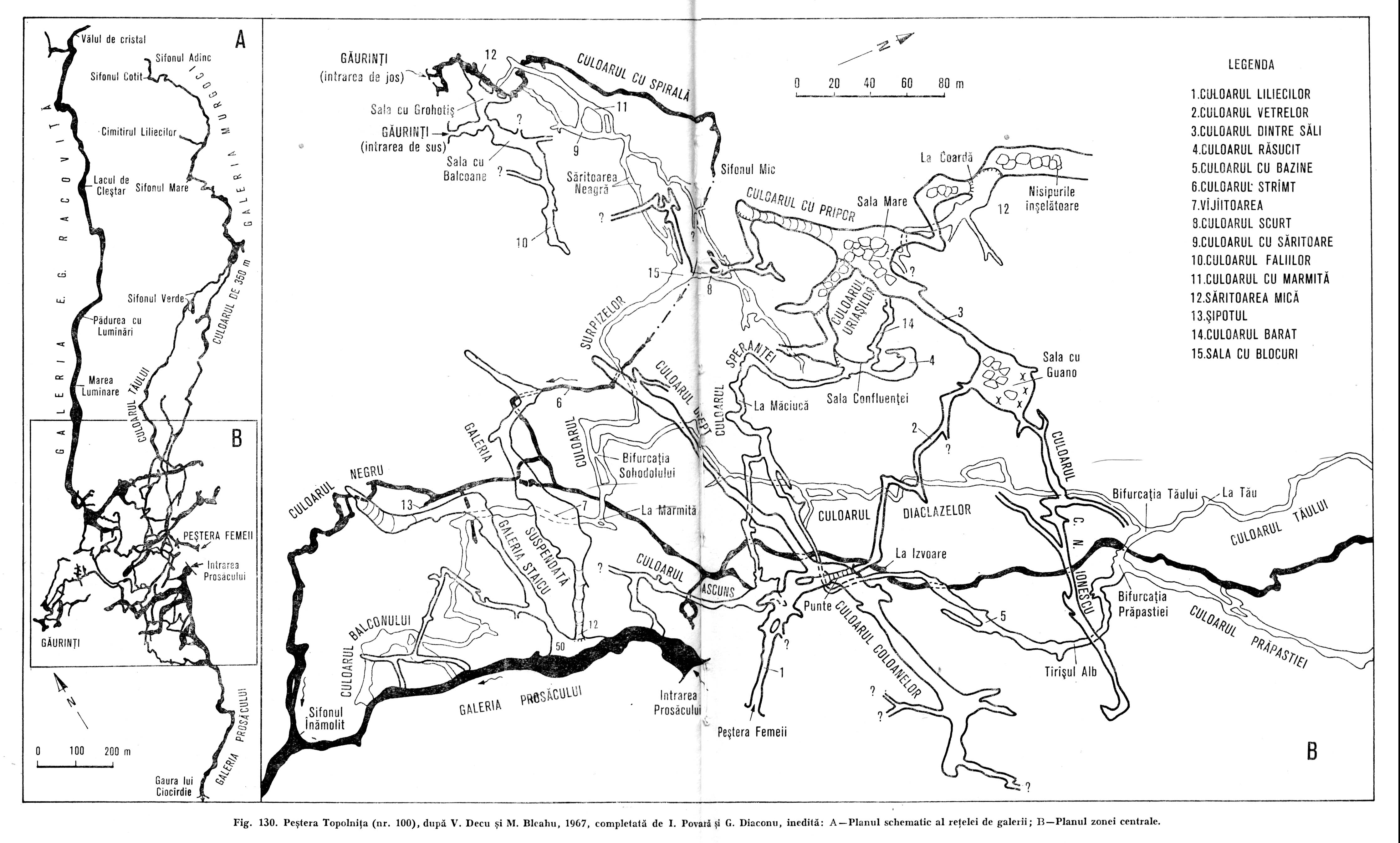 Harta din Pesteri din Romania 1976
