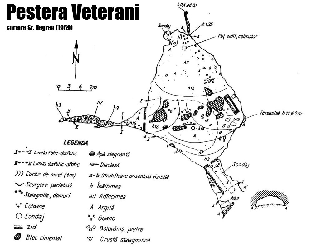 Fig. 104. Peştera Veterani (nr. 80), cartată de Şt. Negrea, din Şt. Negrea şi A. Negrea, 1969, simplificată.