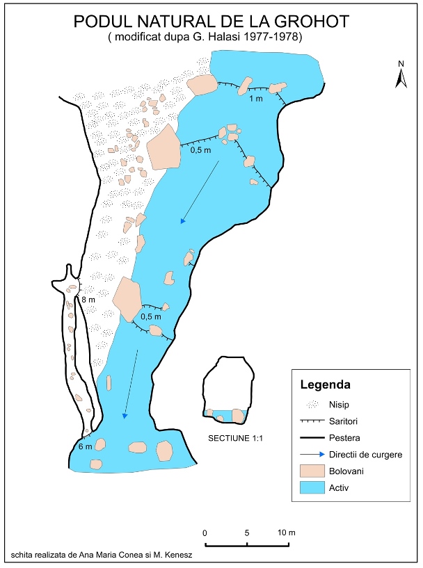 - Schita podului natural de la Grohot realizata de Gabor Halasi (modificata cu ajutorul programului ArcMap 10) - prelucrata de Ana Maria Conea si Marius Kenesz